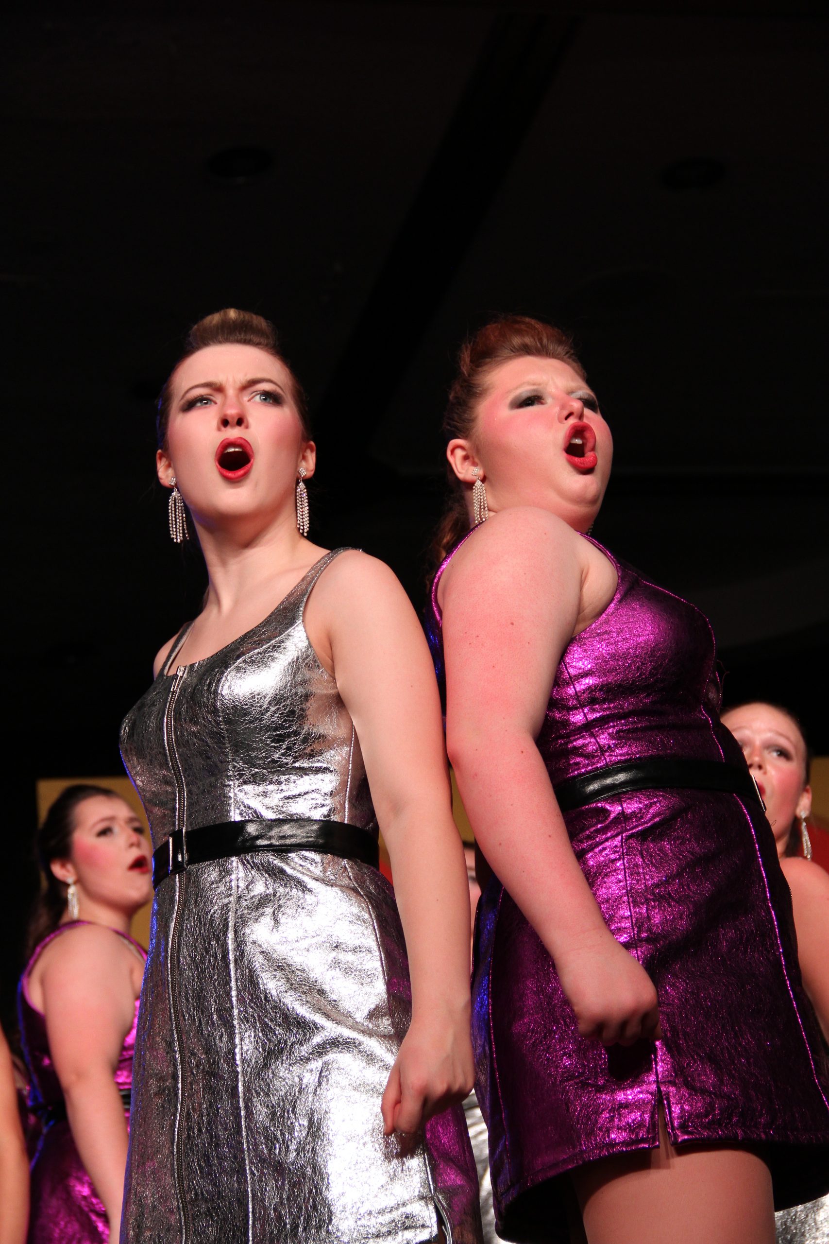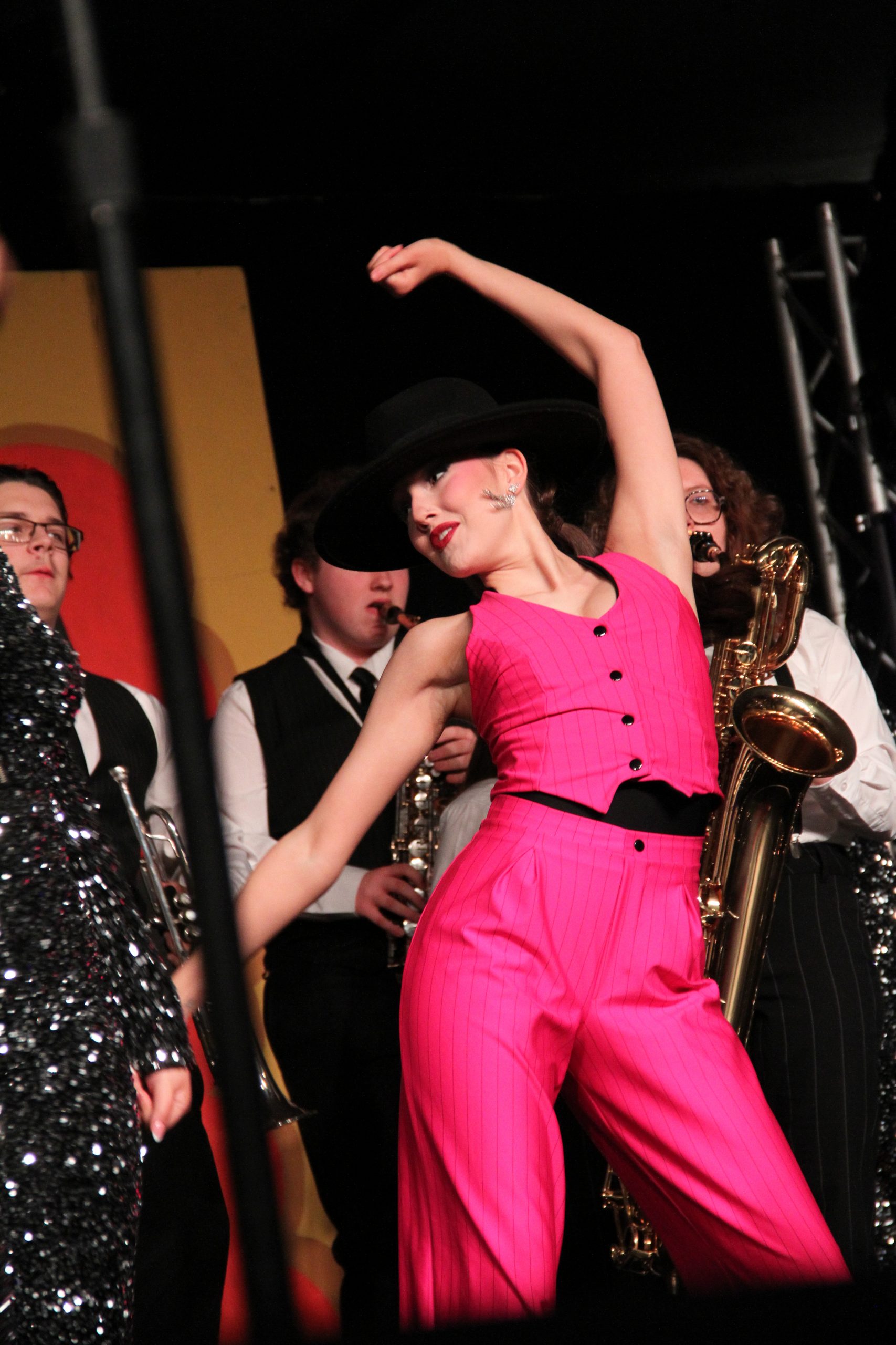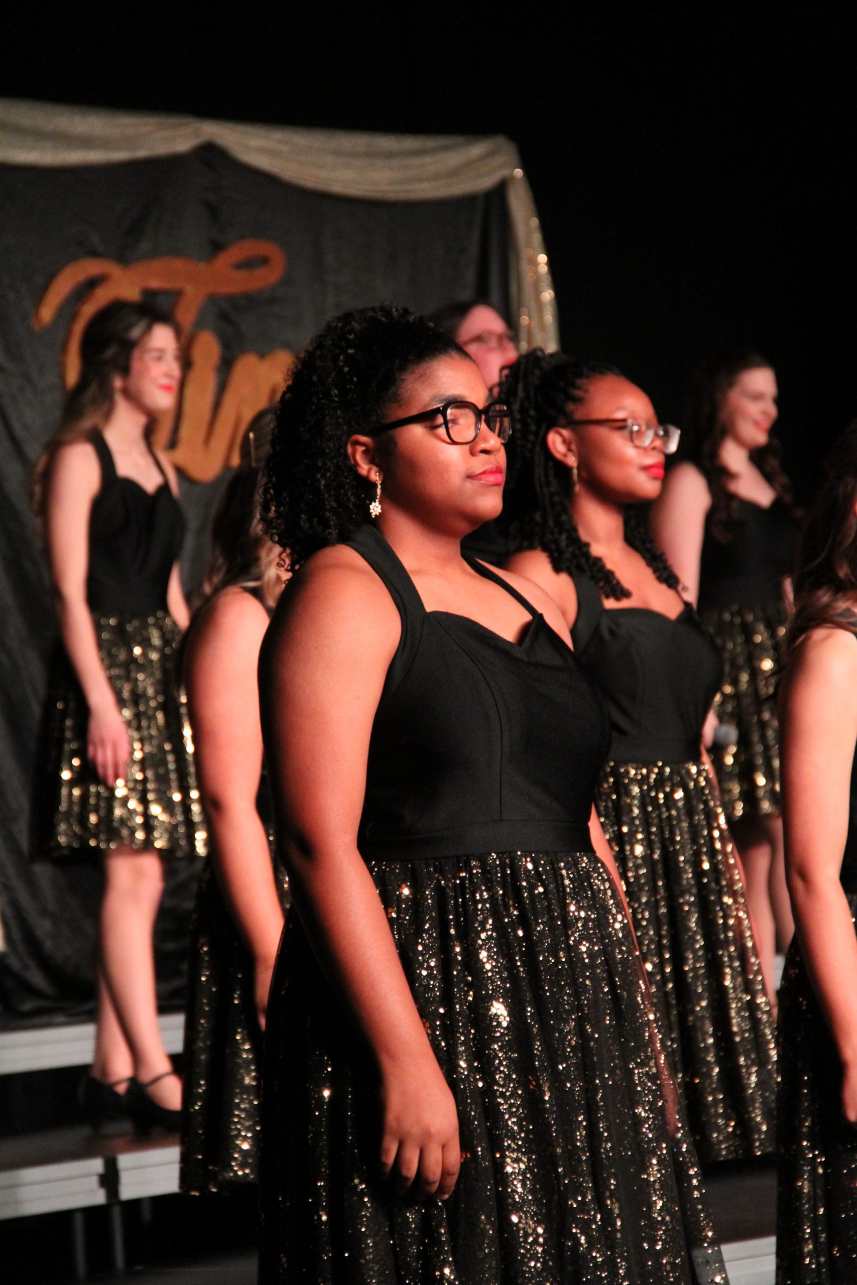 The Treble Division started with a stellar performance by Karis from Briarwood Christian School, Birmingham (AL). Their program, Damsels, featured the group costumed in multiple Disney-inspired princess costumes. Their performance of I Will Rescue You and I’m a Survivor highlighted their powerful woman concept. Finishing up the division was Heat Wave from Hurricane HS, Hurricane (WV). The group glittered up the stage with multicolor, full-sequin jumpsuits as they presented Charlie’s Angels. This high-energy group of performers featured a solo dancer in pink during Mr. Big Shot. Featured on stage during the performance, the student band members showcased their talents during a costume change.