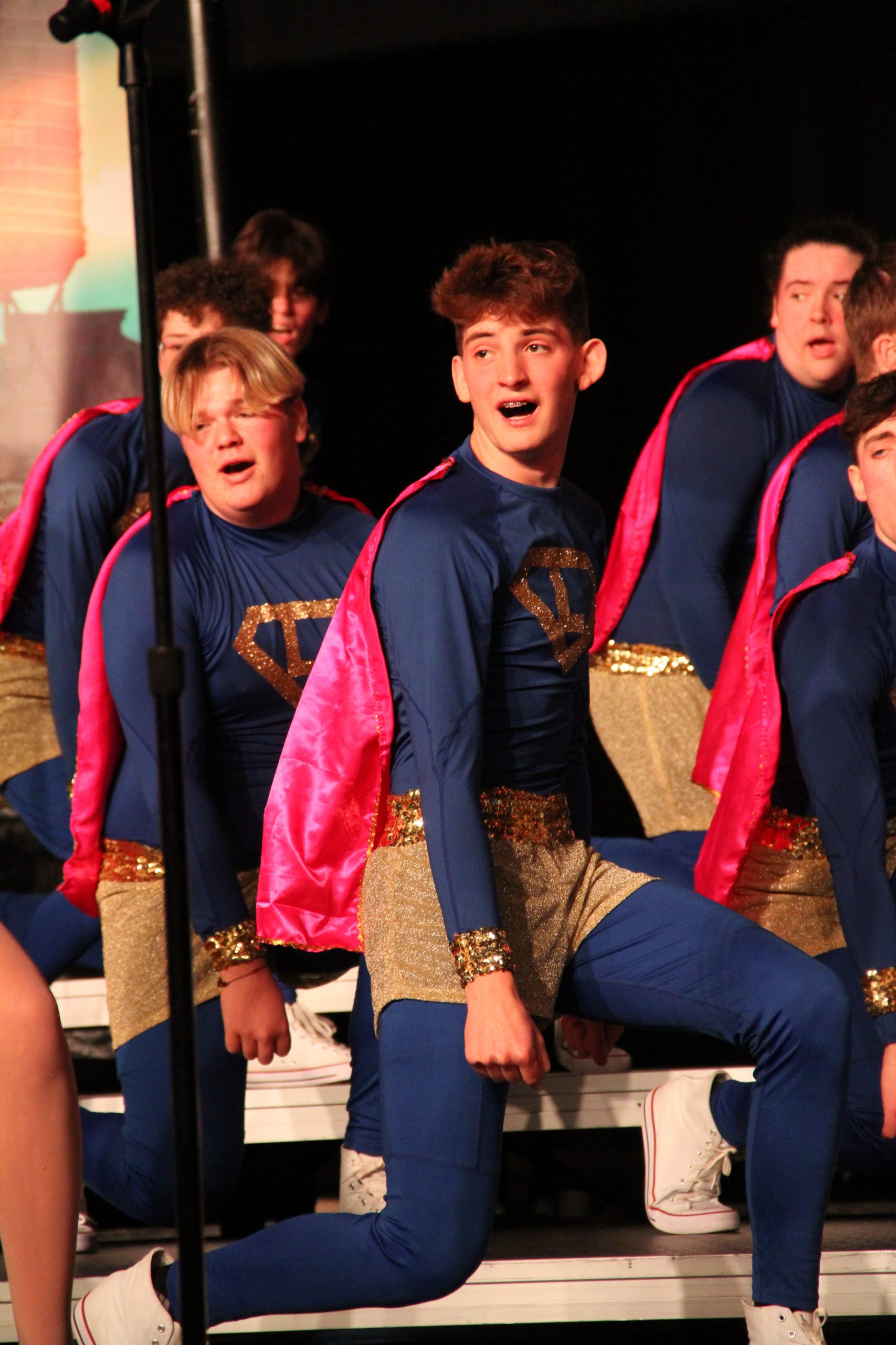 After lunch, it was time for the Open Show Choir Division. Greenfield-Central HS, Greenfield (IN) Legacy presented their inspiring program, Heroes. In only their fifth year of competition, this group used comic-book superheroes to explore societal norms, encouraging all to follow their own path. Costuming complete with capes was replaced with bright fuchsia sequin in this beautiful performance. The next ensemble, Take One from New Hope HS, Columbus (MS) ticked off a great performance of their program, Time. A strong repertoire of songs about time kept us on the journey of growing, living and loving.