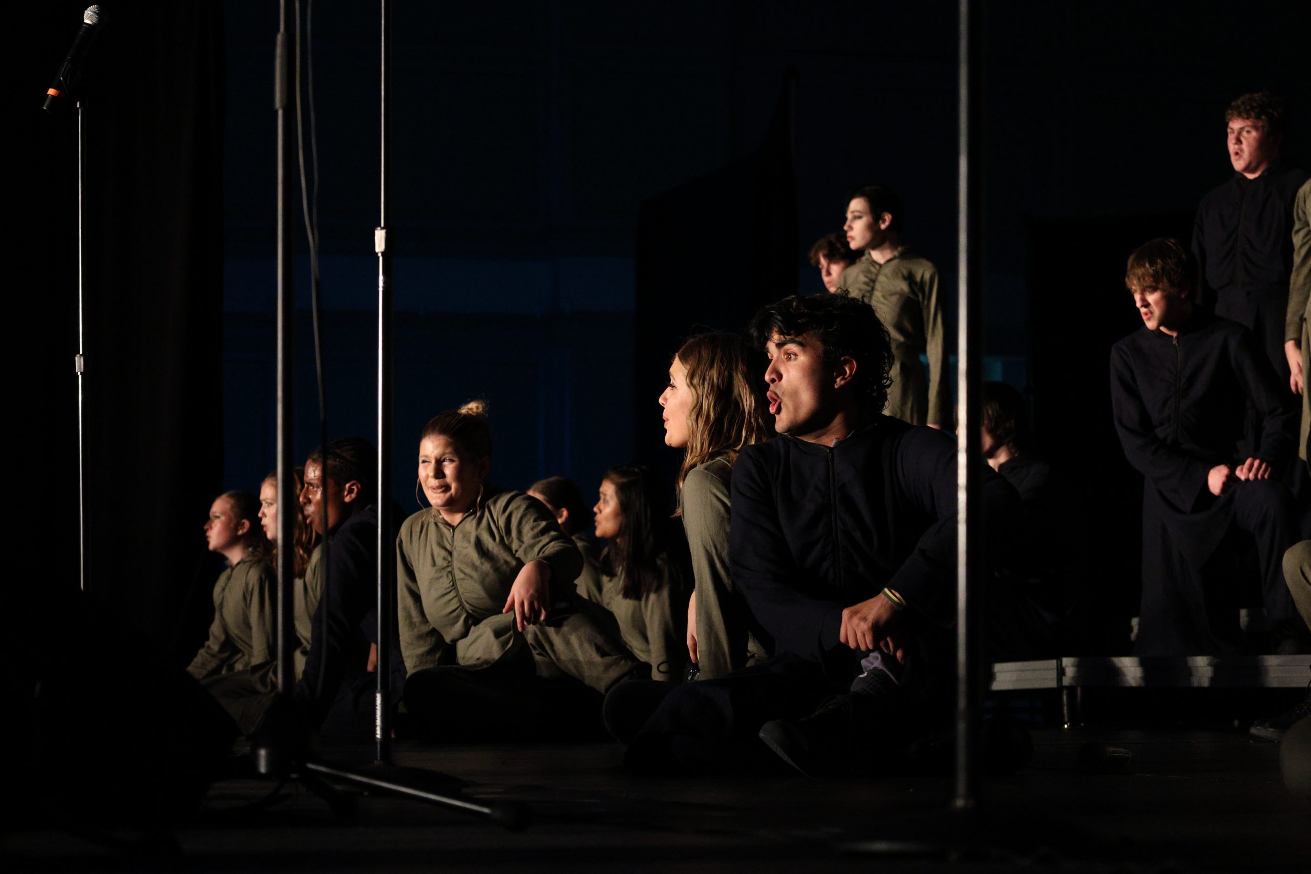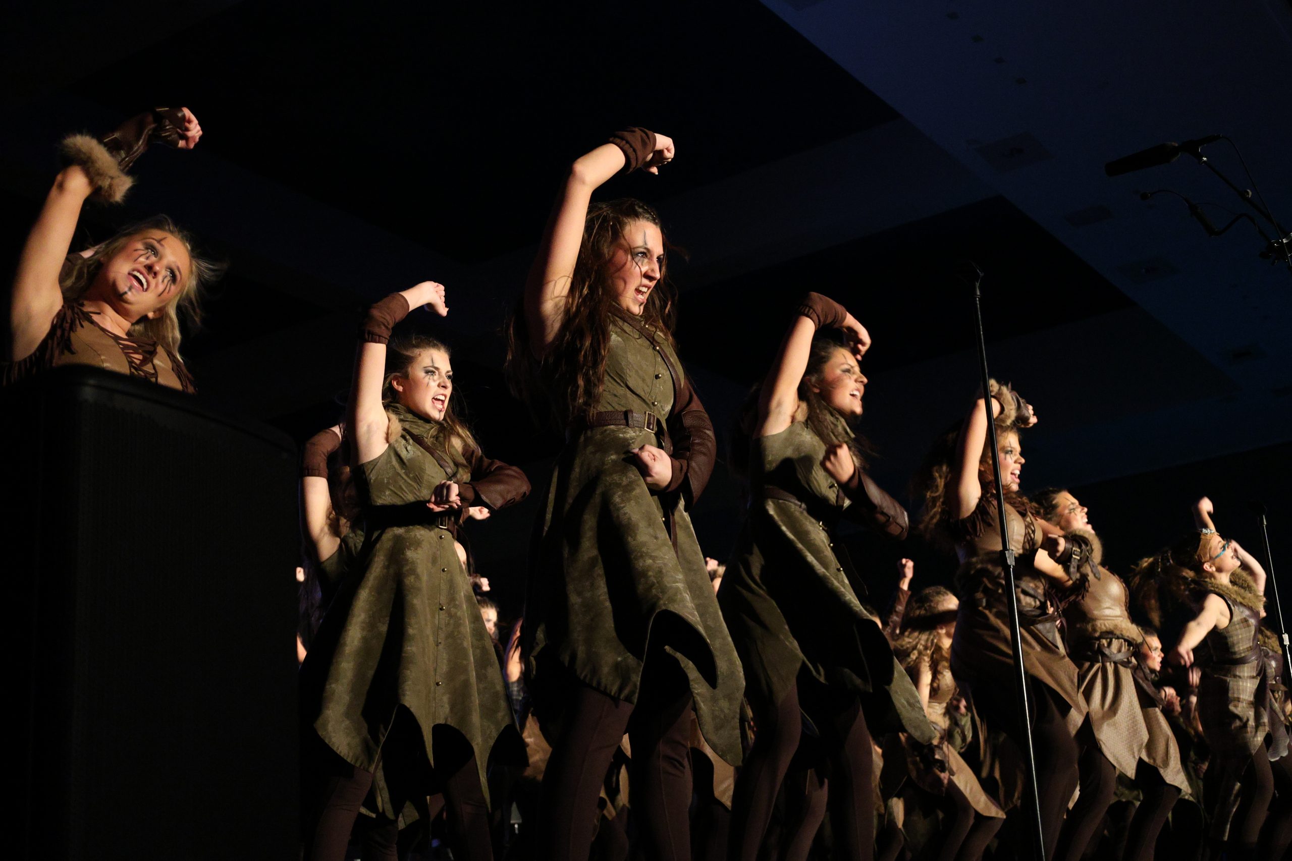 Jr. Middle School Show Choir Ambassadors from Clinton Jr. HS (MS) concluded the first half of the competition with “Castaways,” a tale of survival and hope.